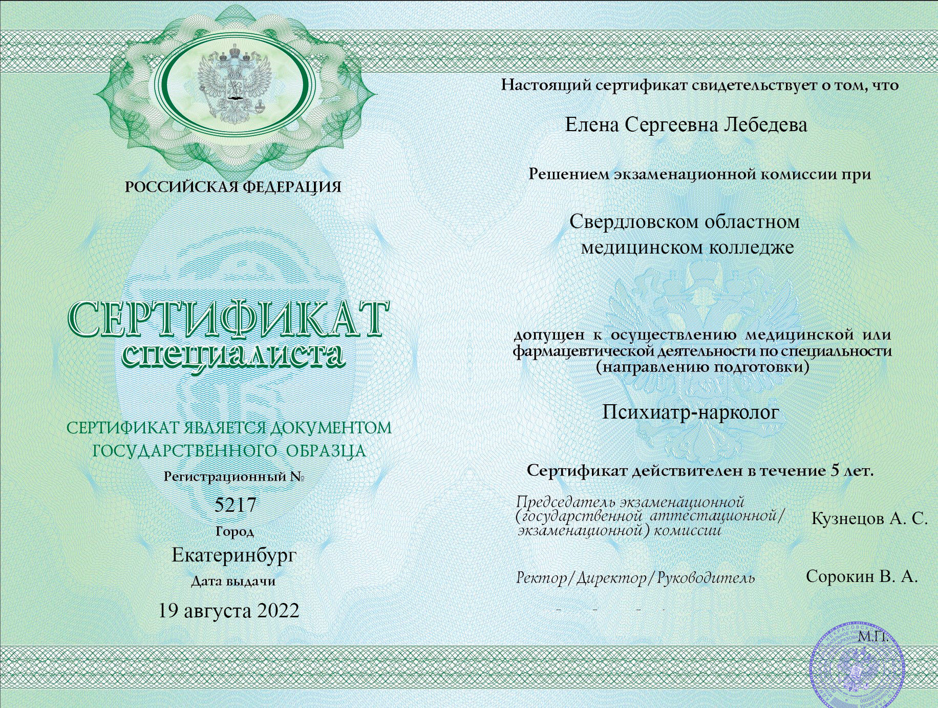 Елена Сергеевна Лебедева врач нарколог клиники доктора Стукаловой в Хоринске